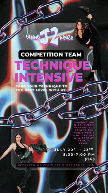 Are you auditioning for our 2025-2026 J2 Competition Team, or just looking to take some incredible classes in various dance styles? Our intensive offers classes in ballet, jazz, contemporary, tap, hip hop, musical theater, lyrical and more. Plus, you'll get top-notch audition tips from industry experts. This intensive is open to everyone but REQUIRED for those auditioning for our 2025-2026 competition season. *The dances learned during this intensive will be showcased at Auditions on Thursday with a $35 audition fee.